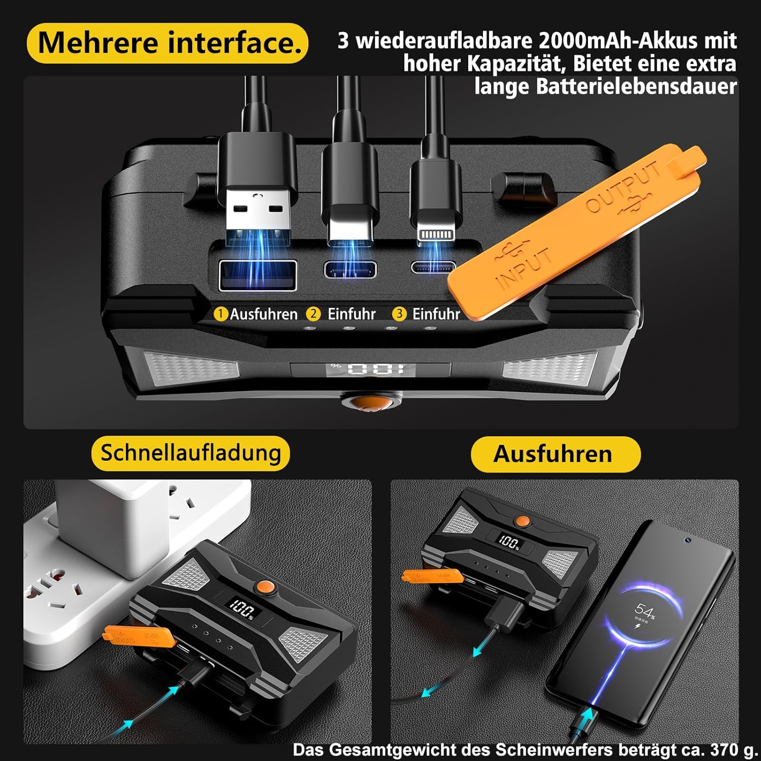 On/off function by waving: Built-in high-quality infrared sensor device, press the sensor button to start the motion sensor, the LED front light can capture the waving motion (within 20 cm) and automatically turn on/off, very suitable for night when working outdoors, you can easily turn the lighting on and off without touching the headlights with your hands, simply switch between manual mode and sensor mode.