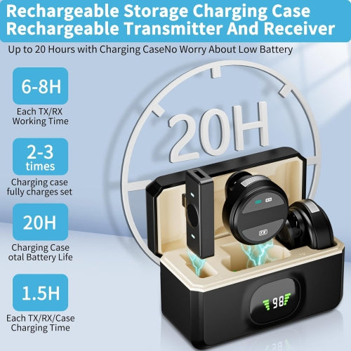 Noise reduction function design - The wireless microphone with charging box adopts 3 different noise reduction modes.